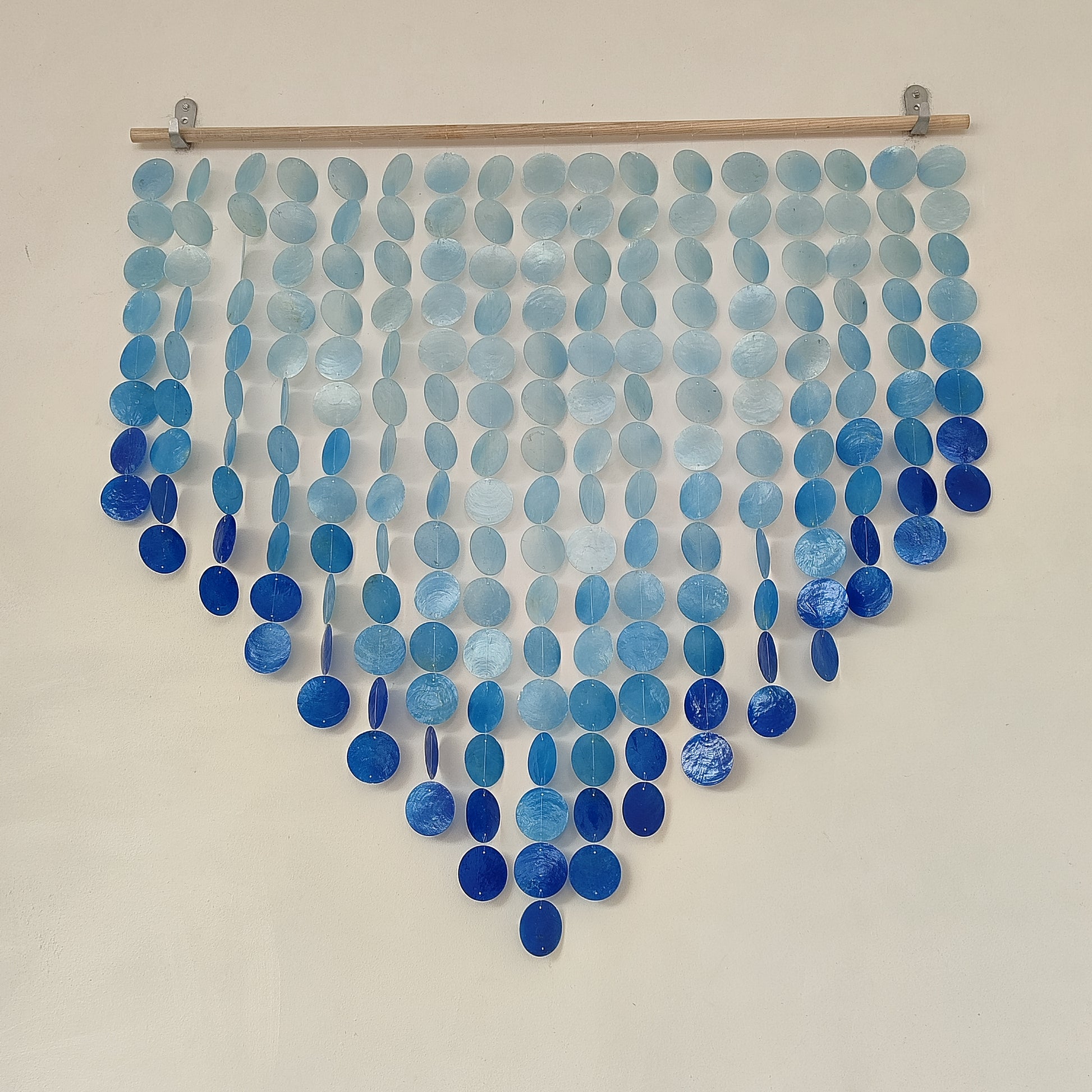 Ombre Blue Capiz Wall Decor: Boho Wall Art - Shell curtain for window or Door