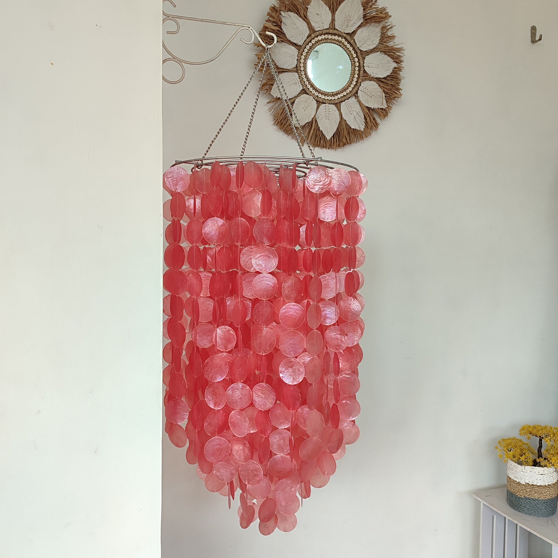 Pink Capiz Shell Chandelier, Pink Capiz Wind Chime