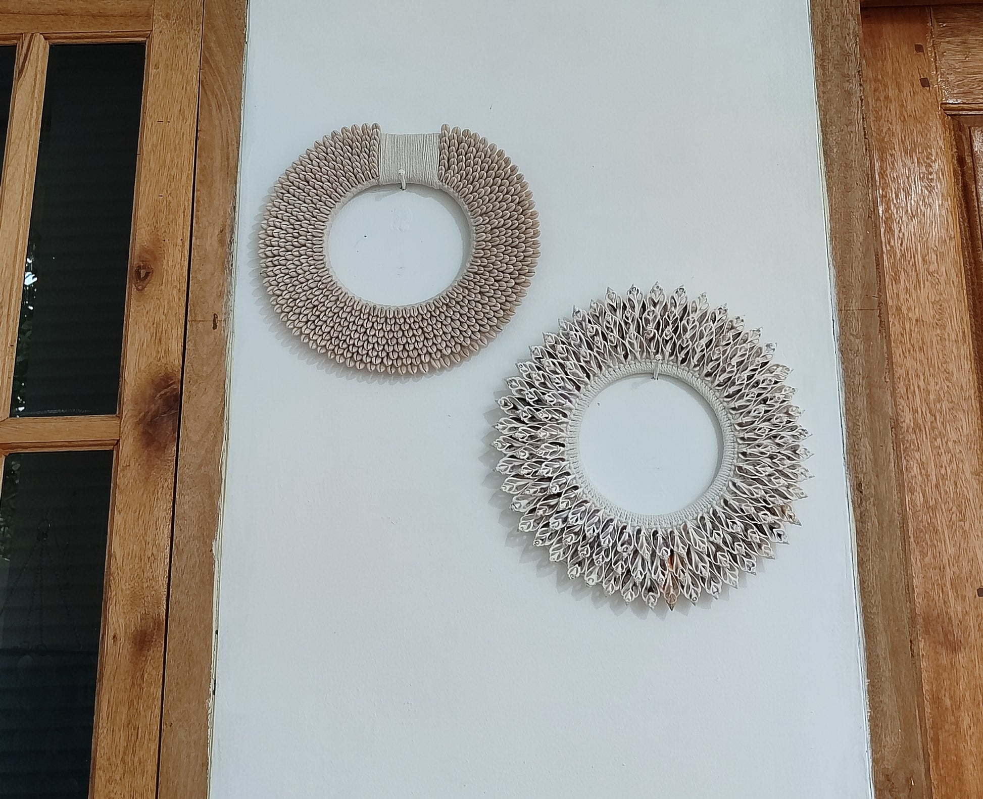 Set of 2 Sea Shell wall Decor, Papua Necklace: Coastal Bohemian Wall Art