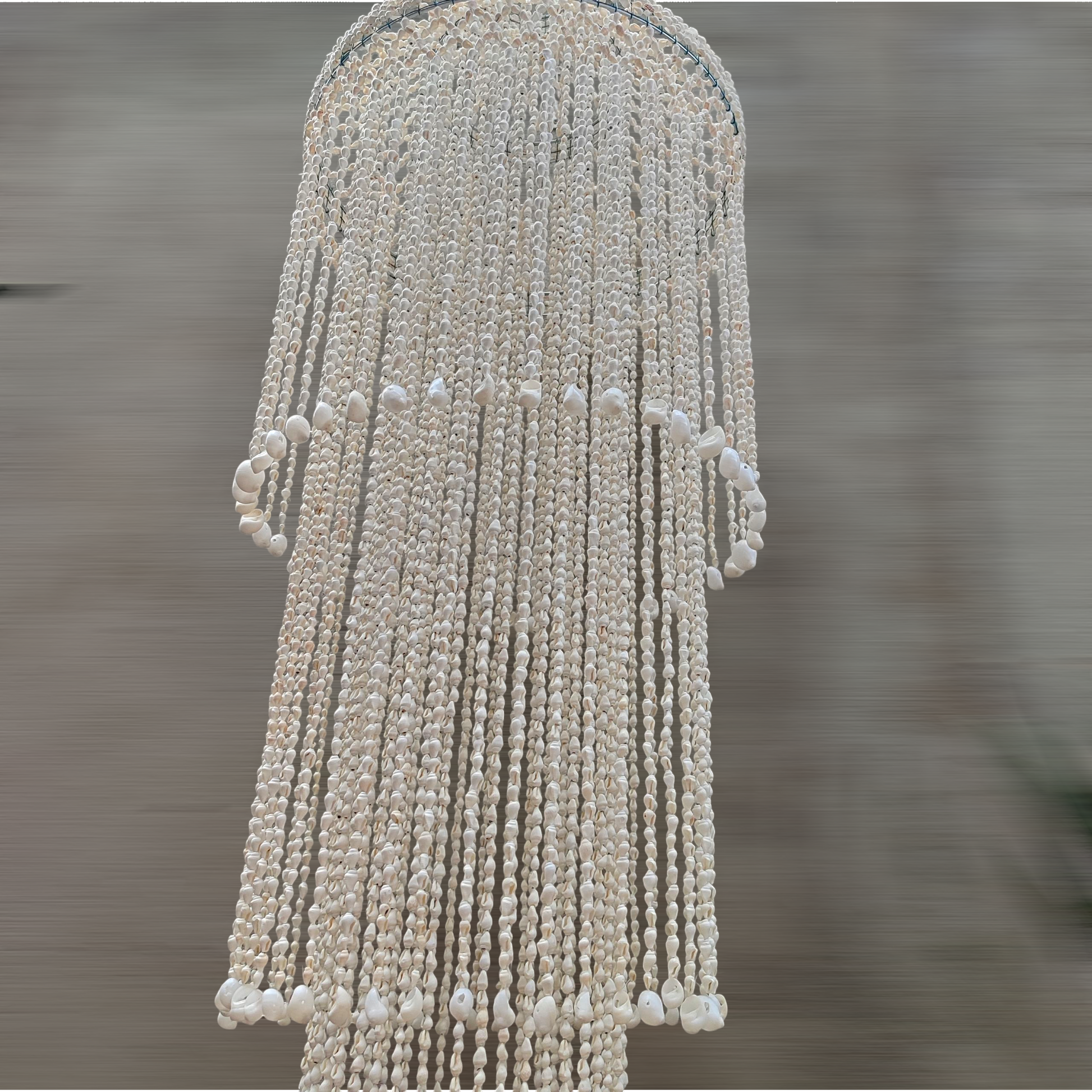 A beautiful large natural seashell hanging chandelier, wind chimes